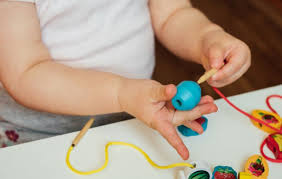 Actividad: Los niños deben ensartar las cuentas o pedacitos de pajilla en el cordón para formar un collar.